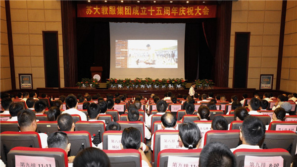 8月18日,在全国各地项目团队的祝福声中,苏大教服集团十五周年庆典拉开了序幕,集团领导班子成员与300余名职工代表欢聚一堂,共同为集团庆生。