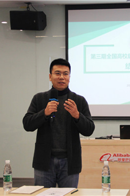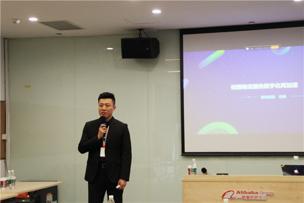 阿里巴巴菜鸟网络科技有限公司党委书记、公共事务部总经理韩曦致辞,他代表菜鸟网络欢迎各位学员来到阿里巴巴园区参加培训,并表示菜鸟网络将通过协会平台更好服务于高校,推动高校现代化建设发展。