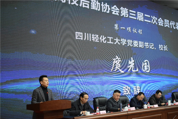 四川轻化工大学党委副书记、校长庹先国教授首先致欢迎辞。他对四川省各高校后勤战线的领导来四川轻化工大学表示热烈欢迎,对此次会员代表大会的成功召开表示祝贺,同时介绍了四川轻化工大学的基本概况、学校后勤发展情况等。