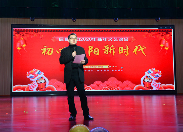 12月30日晚,西南大学圆顶活动中心三楼活动大厅一片欢声笑语,后勤集团“初心向阳新时代”2020年新年文艺晚会盛装上演。西南大学副校长温涛、校长助理周光明、曾在集团工作过的同仁等作为嘉宾,和后勤集团职工代表450余人一起观看演出,辞旧迎新。