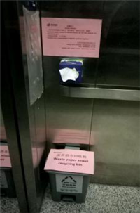 多措并举防病毒。为了减少可能存在的“病毒”的传播全途径,项目部组织员工对学生公寓电梯进行相应的防护措施,设置专用纸巾及垃圾桶。并在各位公寓出入口设立“废弃口罩”回收处,按学校的统一部署,保洁员将废弃口罩统一送到医务室,由学校进行统一处置。