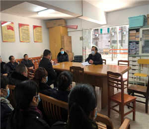 党总支书记莫云光和第二党支部书记唐旭召集公寓管理和值班人员部署防控工作