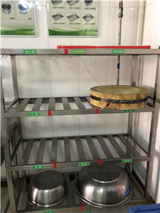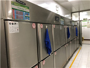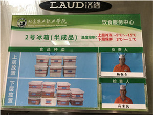 所有食品原材料通过严格检测把关,确保新鲜安全卫生,经工作人员自行到学院西门运回;菜与肉、半成品与成品、生与熟,一物一盒统一分类、装盒、标注放入生、熟保鲜柜。