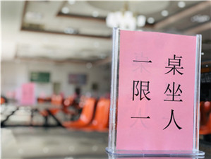 饮食服务中心对面积1152平方米的就餐大厅进行重新调整布局,留出更多空间进行合理规划。大厅内划分洗手区、取餐区、就餐区三个区域;餐厅采取分通道单向通行模式,出、入口分别设置;对餐厅内通行路径进行规划,红线引导,相互并行的通道之间保持距离,尽量避免人员交叉通行。60套就餐桌椅整齐排列码放,间距1.5米,人均就餐面积2平方米;排队间距间隔1米,避免取餐拥堵。