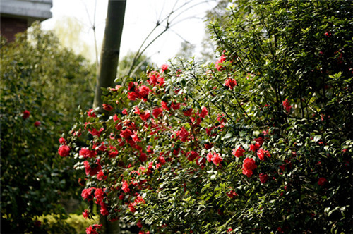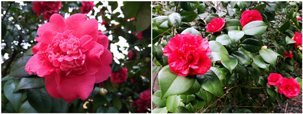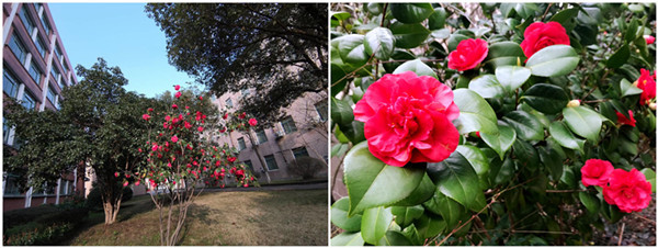 在另一边的茶花又是一番不同的景象,相比纤细的玉兰,茶花更显丰腴,呈碗状花型的茶花,花瓣正团团簇簇地向外舒展着,层层叠叠,热烈而奔放,迫不及待地想向经过树下的每个人展示自己的美丽。而茶花花色也更为艳丽缤纷、绚彩夺目,有红、橘、紫、黄,一树一树的茶花绽放,远远望去“恍如赤霞彩云”,惹人沉醉。各式各样的花儿在嘉院小路的两旁、宿舍的楼下忙碌着、拥挤着绽放,竞相争艳,构成了嘉院别具一格的校园春景。