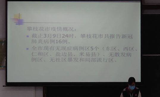 为有效应对新冠肺炎疫情,提升学校卫生管理水平和疫情防控能力,保障广大师生的身体健康和生命安全。3月10日上午,攀枝花学院后勤管理处联合攀枝花市疾控中心开展了一场新冠肺炎疫情防控知识专题培训。学校各院系辅导员、公寓管理员、后勤管理处卫生科及卫生所医务人员等41人参加了培训会。