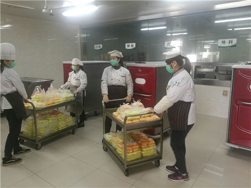 做好配送服务。北固食堂为奋战在抗“疫”一线的医护工作者保障工作用餐。