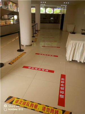 每个专窗设立横栏隔开,窗口前布设地面排队引流导线。师生在工作人员的引导下按地面导线依次间隔排队购餐;就餐时同向而坐,专设大厅督导员随时引导提醒;食堂就餐倡导自带饭盒打包就餐,最大限度避免聚集性就餐。经过严格规范用餐及加强监督,保证师生在食堂就餐的安全有序。