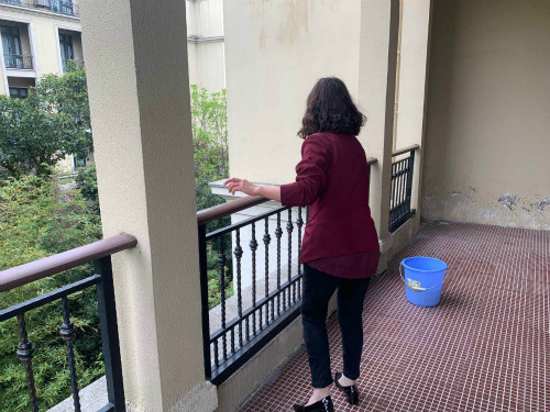 此次全校共有3756人次进行预约,每个人需求也不太相同,需要晾晒的被子、褥子、衣服等等数量上万件,这个工作需要极其耐心细致。为了避免弄混、弄错,宿舍服务中心工作人员专门准备了一批标签,给需要晾晒的物品“贴标签”,保证晒后都正确归位。晾晒的过程中,还会给它们“翻个身”,还时不时去给它们“敲敲打打舒松筋骨”。宿舍服务中心全体员工分工明确,各司其职,擦栏杆、取被子、夹标签、晒被子、收回一整套流程有条不紊,中心上下齐心协力让学生们的被子既晒太阳、又保持干净,最后物归原位。虽然这个服务比较繁琐,但是拉近了与学生们的距离,这也充分体现了后勤人全心全意为学生服务的宗旨。