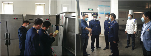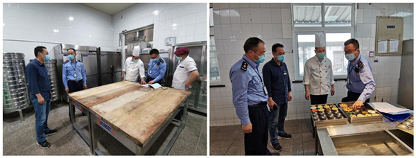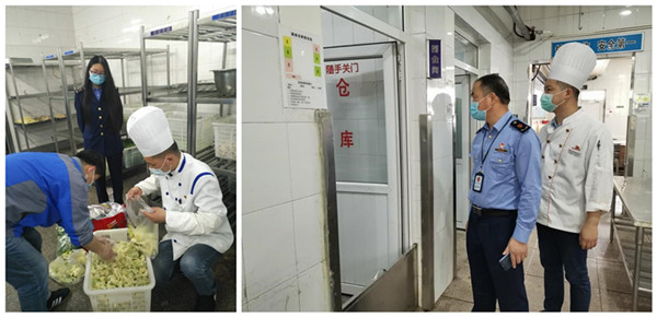 4月26至30日以及5月7日,嘉兴市南湖区市场监管局和城南街道市场监管所分别来我校越秀校区和梁林校区检查开学食堂工作。饮食管理服务中心主任周吉、副主任徐淑燕陪同检查。