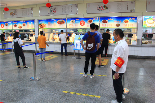 新冠肺炎疫情发生以来,山东理工大学饮食服务中心以抗疫攻坚作为检验全体理工饮食人初心使命的试金石,不断强化大局意识、服务意识和责任意识,贯彻落实疫情防控要求,学生返校后努力保障校园就餐秩序稳定良好。