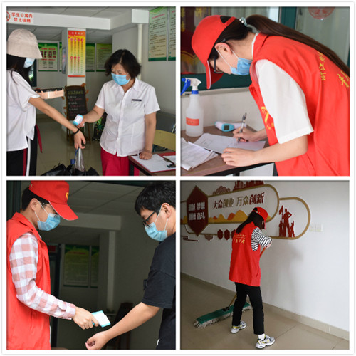 润物细无声!在宿管阿姨们日复一日的辛勤守护中下,同学们在潜移默化中也主动肩负起了防疫责任。一大批乐于奉献的同学们,加入了寝室楼志愿者的队伍,他们穿上了红马甲,贡献着自己的一份力量。有的拿起了测温枪,保卫着学子的健康;有的抹窗拖地,维护着楼栋的卫生。