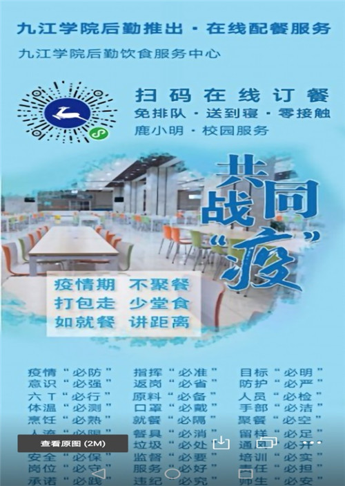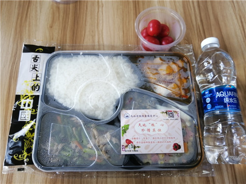 饮食服务中心延伸服务的另外一个举措是5月初推出了线上订餐服务。在饮食服务中心的学生意见箱里总有学生反映,工作学习忙,没时间去食堂吃饭,不小心错过了饭点,想订外卖又担心食品安全,食堂排队时间比较长等等。这些问题在九江学院饮食服务中心得到了解决。为保证校园餐饮安全,满足师生订餐需求,饮食服务中心依托“九院后勤”公众号推出了线上订餐程序,全力打造九院网上食堂,学生们足不出户,就可以吃到食堂饭菜,真正做到好吃不贵,安全有味。目前中心全校启用了8个流动配餐点,购置了10个流动保温配餐箱,招募了12名配餐员,每天送出各类套餐和特色炒饭、炒面100余份。所有配餐员均招募校内勤工俭学学生,在为师生提供服务的同时也为学生提供了实践的平台。线上订餐服务一经推出,受到了广大师生的好评,经管学院A1921项玲秀同学说:“有时下课晚或赶上就餐高峰,就想能不能订份外卖,但社会上各类外卖食品安全问题也让我们非常担心,现在好了,安全卫生的食堂饭菜可以直接送到寝室,时间节省了,饮食健康更有保障,为食堂的贴心服务点赞”。