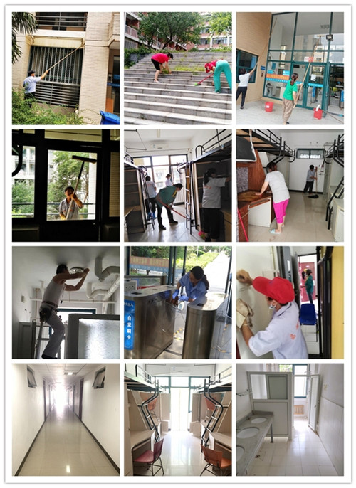 为全面做好此次迎新工作,暑假期间公寓与物业中心会同修缮部门对所有新生入住的房间提前进行粉刷维修,并对所有房间内的桌椅板凳、门窗把手、电源插座、淋浴系统等各个方面都进行了细致入微的多维巡检,并对如卫生间、阳台等易发生锈蚀纳垢的部位进行深度保洁作业,确保新生到校即可入住干净整洁的公寓宿舍。
