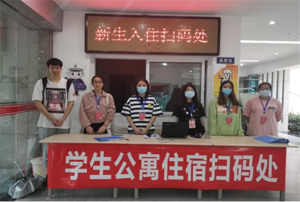 为让新生进校就体验到后勤人的热心和用心,校园专门布置了迎新花卉并在休息区提供了热水,新生入住、体检、洗浴等均按照以往惯例,实行延时服务,水电保障24小时服务。在校医院体检抽血处为舟车劳顿的新生免费提供了葡萄糖水和可爱的小糖果;在学生寝室24小时开放热水器的基础上,专门在新生报到及军训期间恢复开水房免费供应;宿舍大厅设置了钥匙和床上用品一站式服务,新增门锁使用说明,接到学院有部分身高1.9米以上的同学,宿舍紧急将床加长至2.2米,共改造了5间寝室。