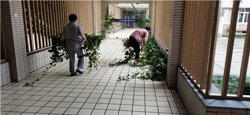 物业管理服务中心提前召开部门会议,布置安排各项校园清扫保洁任务。全体保洁员认真清扫教学楼、行政楼、实验中心、经管中心、红船精神育人展示馆、图书馆等公共区域卫生,加强保洁力度,仔细擦拭窗户、地板、桌面、玻璃、实验器材等,认真冲刷台阶及卫生间,排查卫生死角;马路工来回穿梭校园马路,一遍又一遍地清扫落叶垃圾,确保校园整洁明朗;绿化养护工悉心摆放教育部专家考察线路周边绿植,认真修剪草坪、树枝,并补种书带草等绿植;保洁片长加强检查力度,来回奔走在整个校园,巡查是否存在卫生环境不达标区域,并及时进行保洁清扫。