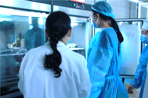 检查六食堂后厨时,众人按照要求穿戴好防护用具,方才进入后厨。从切菜区、炒菜区再到出餐区,食堂负责人都做了详细介绍,刘娅等人认真聆听并检查可能存在的食品安全隐患。刘娅表示食堂除了严格按照规定流程进行食品加工制作外,还需警惕潜在的卫生漏洞,在保证食品安全卫生的基础上,进一步为师生提高饮食服务质量。