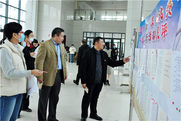 11月13日上午,山东理工大学物业管理中心在7号综合教学楼举行“厉行节约 反对浪费”硬笔书法展评,物业管理中心党支部、生命科学学院本科生党支部全体党员参加。