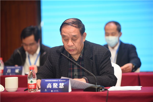 中国教育后勤协会副会长、接待服务分会理事长高聚慧作第一届理事会工作报告。