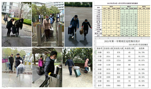 2月28日至3月7日期间,连续六天,南京理工大学学生公寓全体员工260余名从清晨到夜晚,一共迎接26000余名学生分批错峰返校住宿。