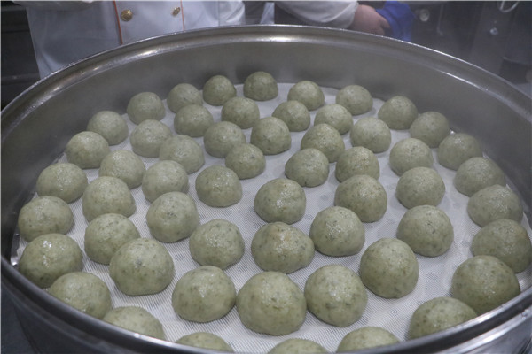活动前期,同学们积极报名参加体验活动,食堂工作人员提前为参与活动的学生精心准备好艾草汁液、糯米粉、小麦淀粉、白砂糖、豆沙馅、咸菜春笋馅等各式材料。体验开始前,同学们首先进行了午检,大家佩戴好口罩、经测温后有序进入食堂內厨,并在食堂工作人员的指引下,正确穿戴好围裙、袖套和厨师帽等工作服。