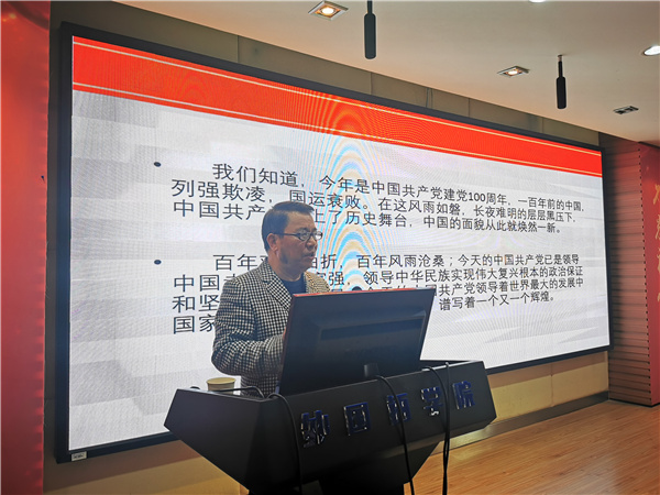 会议邀请博士生导师罗大明教授,做题为《“朝气蓬勃,永葆青春”——中国共产党为什么伟大、辉煌》的讲座报告。罗大明围绕百年间中国共产党登上历史舞台,领导中国走向繁荣富强、实现伟大复兴的时间主线,从“坚持‘为中国人民谋幸福,为中华民族谋复兴’的宗旨和初心;坚持实事求是的思想路线,把马克思主义同中国的革命、建设、改革实践结合起来,大胆进行理论创造,形成‘中国化马克思主义’,指导党的各项工作;坚持自我革新、自我进化、反腐倡廉、从严治党;坚持党的队伍建设,坚定党员干部的理想信念”四个方面,阐述了中国共产党伟大、辉煌的原因。罗大明教授诙谐幽默、深入浅出的讲解,让在场人员纷纷表示受益匪浅。