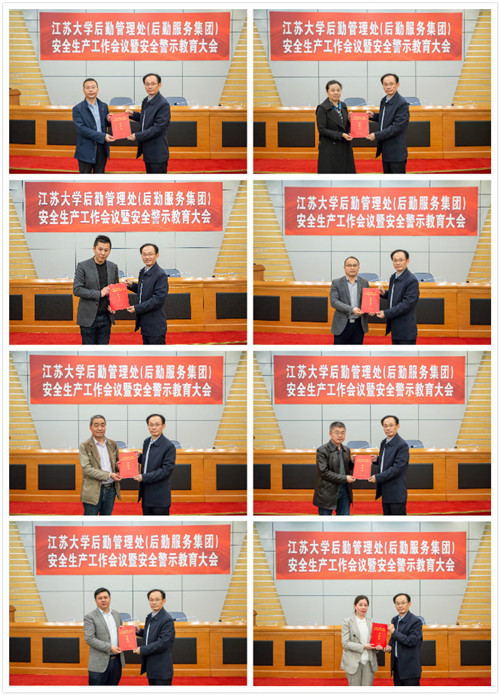 会上,全体人员观看了《校园安全隐患排查与事故警示教育片(高校篇)》。各科室(中心)负责人向后勤处处长(总经理)王善民递交《后勤管理处(后勤服务集团)2021年度安全生产及消防安全责任书》。