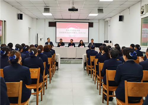 4月28日,西南大学后勤集团举行学生宿舍星级服务建设启动仪式,正式拉开学校“三全育人”综合改革服务育人专项工作组“优服计划”实施序幕。后勤保障部党委书记李建光,副书记、纪委书记陈文真,后勤集团副总经理汤晓荣和学生宿舍服务中心相关负责人、职工团队近百人出席大会。