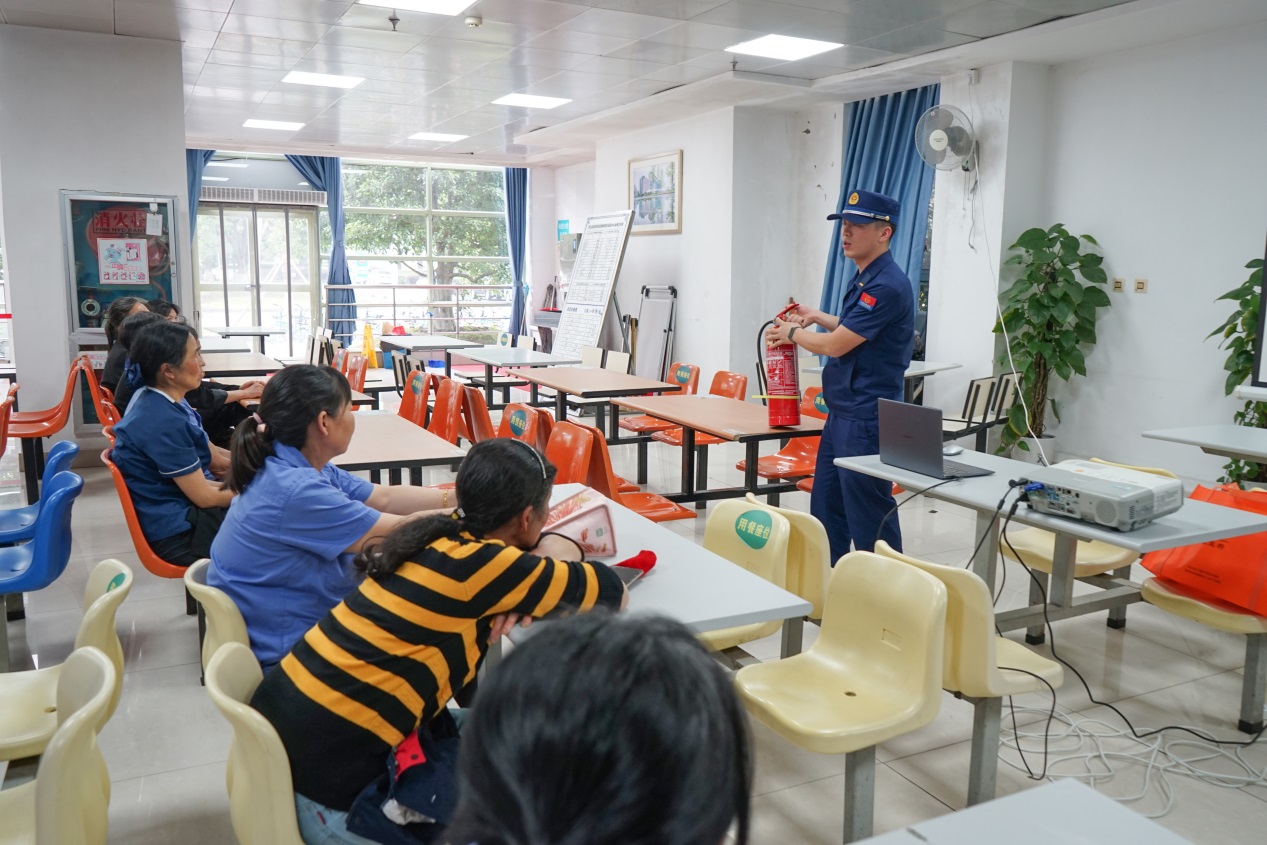 王宁通过消防短片和幻灯片展示等,直观展示了火灾起因和严重危害,详细介绍了火灾扑救的正确时机、科学方法以及人员疏散、逃生自救的注意事项等,并现场讲解了灭火器、消防栓水枪等消防器材的使用方法。