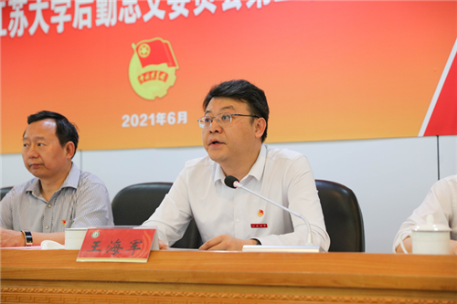 王海军代表校团委向为后勤共青团事业做出贡献的全体团干部、广大团员青年致以最崇高的敬意!希望团员青年肩负起新的时代使命,为全力打造“品质后勤”“智慧后勤”“绿色后勤”“人文后勤”“开放后勤”“清风后勤”,着力实现后勤服务标准化、管理精细化、运行智能化,建成与创建“双一流”和高水平研究型大学工作相匹配的后勤服务保障体系贡献自己的青春力量。