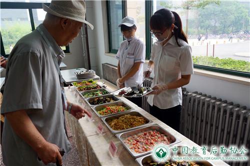 6月23日上午,中国人民大学后勤集团社区居家养老服务中心“中国人民大学社区老年餐桌”于中区食堂一层大伙食堂试运行。营业前,后勤集团总经理林建荣在党委副书记兼副总经理孟林、总经理助理兼餐饮管理部部长朱岩及中区食堂相关负责人的陪同下,对“老年餐桌”的菜品、餐具、人员配备等情况进行了解,并对具体工作进行了指导。