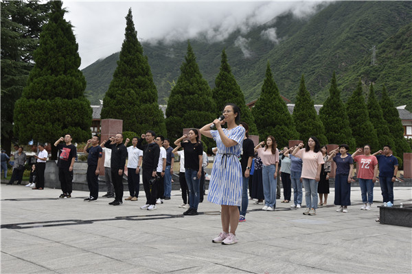 在红军飞夺泸定桥纪念碑前,全体党员齐声高唱中华人民共和国国歌,并向革命先烈敬献花篮,深深三鞠躬,深切缅怀英勇献身的革命先烈。在鲜红的党旗下,大家重温了入党誓词。党员干部们在铿锵有力的宣誓声中进一步坚定理想信念和责任担当。