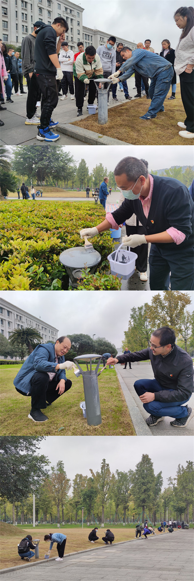 上午10点,活动准时在主楼前广场举行。在仔细观看了维修师傅的示范后,党员同志和同学们纷纷拿上工具,配合默契地投入到翻新草坪灯的实践活动中,有的处理表层污垢,有的涂刷表面油漆,有的清理洒落印迹。经过一个小时的努力,主楼广场草坪灯全部焕然一新。看着大家辛勤劳动的成果,谢继华表示,希望同学们能继续积极响应习近平在全国教育大会上讲话,树立正确的劳动观,形成劳动最光荣、劳动最崇高、劳动最伟大、劳动最美丽的观念,崇尚劳动、尊重劳动,辛勤劳动、诚实劳动,以创造性劳动美化校园、报效国家、奉献社会。