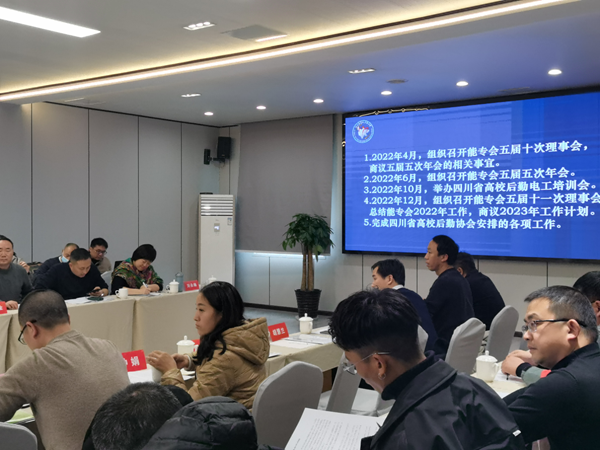 会议审议了能专会理事会成员调整情况、四川省高校后勤协会专家续聘、第三批专家库专家遴选名单、企业会员单位年度评审情况、四川省高校后勤协会第四批企业会员入会名单,通报了能专会《节约型校园评估标准》课题进展情况,汇报了能专会2021年工作总结。参会代表就能专2022年主要工作展开热烈讨论。