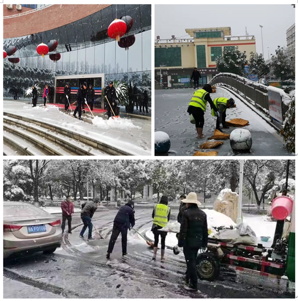 瑞雪迎春情满校园。一场瑞雪,检查我们校园的衣食住行,后勤干部职工带领物业、绿化及环卫工人,用他们的暖心举动,融化师生的上班之路,也温暖着他们的胃。