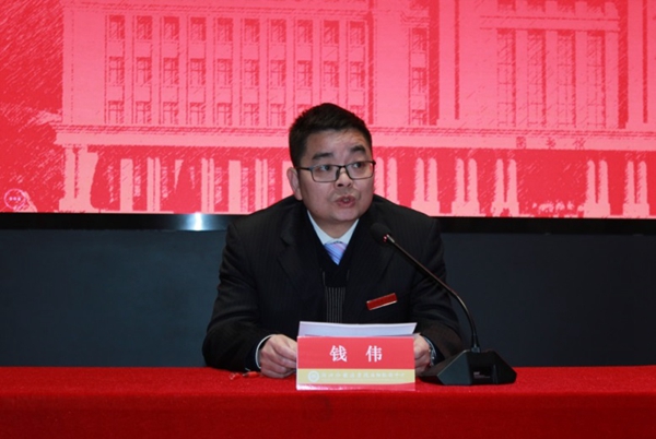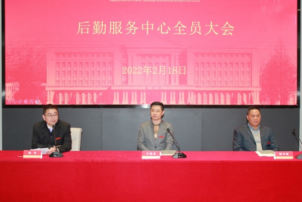 2022年2月18日上午,浙江外国语学院后勤服务中心在望院C116会议室召开全体员工大会。中心领导班子成员和全体员工出席会议,会议由中心副主任钱伟主持。