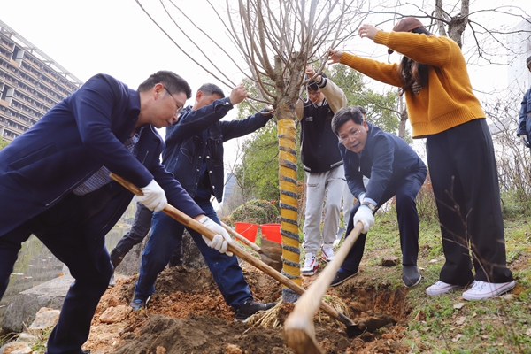 春风催新绿,植树正当时,为迎接亚运会的到来,鼓励全校师生加入到保护环境、爱护绿色的队伍中,创造优美的学习生活环境,3月10日上午,杭州师范大学举行“同心聚力迎亚运”为主题的植树节活动。校领导陈春雷、方亮、应飚、李泽泉、陈永富、戴丽敏、黄兆信、胡绍华和党外代表人士、机关负责人及学生代表等50余人来到仓前校区博文苑西侧河道旁,共同参加义务植树活动,为学校增添一片新绿。