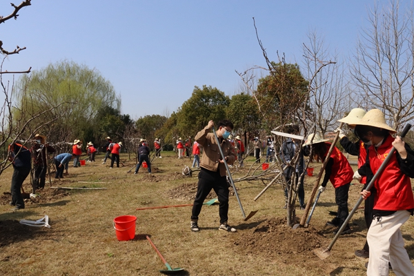 3月11日上午,学院师生代表一起携手种植翠冠梨果树,大家热情高涨,纷纷撩起袖子参加到种树过程中,有的扶着树苗、有的挥锹培土、有的夯实泥土,还有的为入土的树苗浇水,齐心协力各司其职,完成了果树的种植。