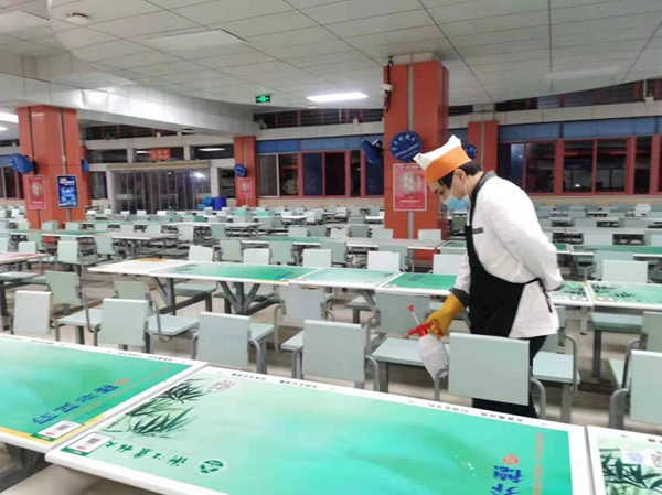各食堂严格按照部署要求,采取分时错峰就餐,延长食堂开放时间,做好食堂及周边环境卫生清洁和预防性消毒等举措,构筑校园餐饮安全防护墙。银杏餐厅提前对餐厅进行全面清扫消毒,为开学第一餐的平稳运行提供安全保障。