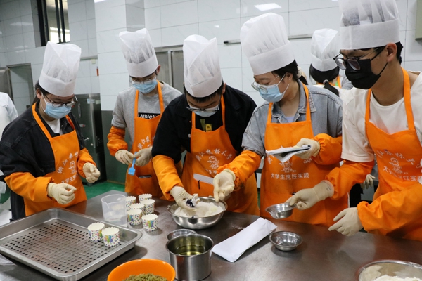 4月9日,浙江农林大学劳动教育试点课程——《大学生烹饪基础教育与实践》第一次烘焙实践课在集中加工中心开课,后勤餐饮中心加工管理部负责人作为主讲教师为学生授课。
