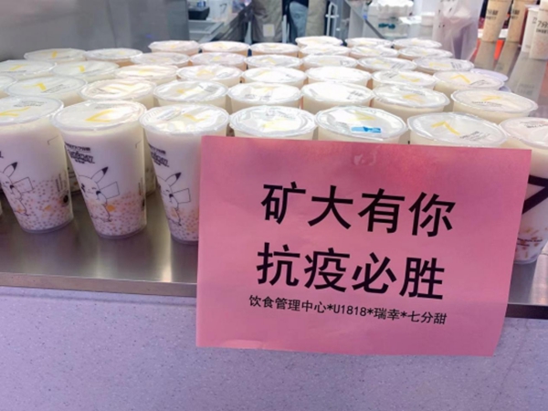 4月11日中午,刚刚完成中国矿业大学全校30000余人核酸检测采样的医护人员收到美食广场一层准备的100份咖啡和奶茶,并带去了暖心的问候:“感谢有你们的守护,你们辛苦了。”对于饮食人的关怀,现场医护人员感动不已。大家纷纷表示,你们送来的是情真意切,暖身更暖心。
