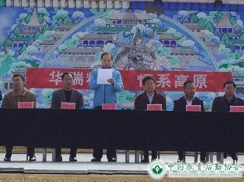 8月20日,“健康灯塔”计划—中西部贫困地区青少年儿童营养健康救助项目捐赠仪式在青海省果洛藏族自治州大日县珠牡广场举行。本次活动是由中国教育后勤协会中小学后勤分会与新华青少年儿童食品质量研究发展中心共同主办。全国政协委员、九届、十届全国政协常委、原安徽政协副主席王鹤龄、教育部机关服务局原副局长、中国教育后勤协会常务副会长兼中小学后勤分会理事长张文忠、中国教育后勤协会中小学后勤分会副理事长兼秘书长张海昕、新华青少年儿童食品质量研究发展中心秘书长朱屹、藏青川甘滇五省区藏族教育协作领导小组办公室主任吉合泰及青海达日县副县长久迈旦增等相关领导出席了本次活动。