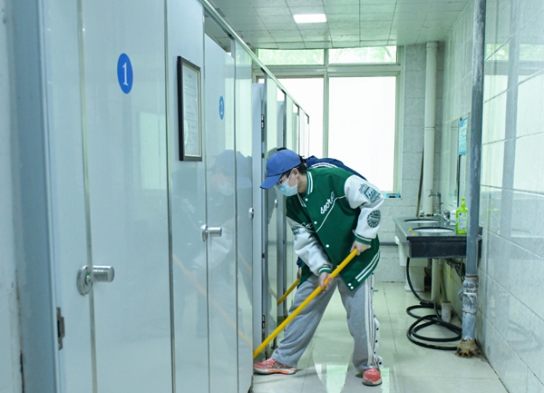 在宿舍区,党员们跟随管理员一起出入登记、体温测量和卫生清扫工作,经过体验,同学们更加理解平日里这些看似“不近人情”“繁而又琐”的管理员们,同学们说:“这次体验,让我对校区的安保和疫情防控工作更有信心了,对叔叔阿姨们的工作也更加理解了。”