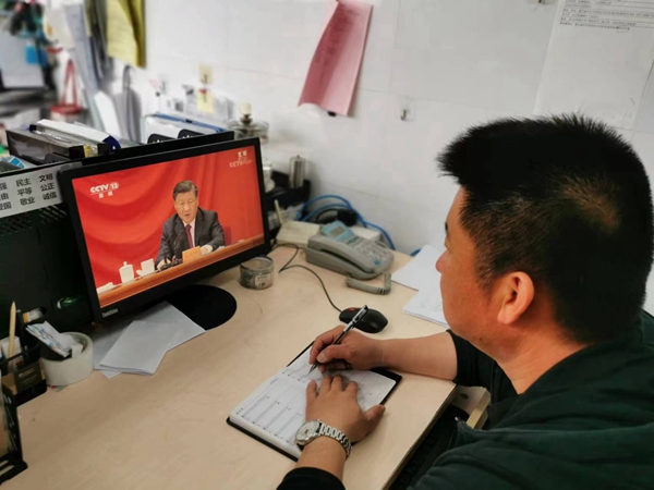 在认真听取习近平总书记的重要讲话后,党员和团员青年备受鼓舞,纷纷表示,习总书记的重要讲话思想深刻、催人奋进,我们要与新时代同向同行、砥砺奋进,为实现第二个百年奋斗目标,实现中华民族伟大复兴的中国梦贡献青春力量。