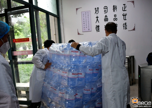 为做好师生的公寓供水保障工作,自5月9日起,后勤保障部联合校内教师志愿者、工作人员搬运、分包共计3600桶(4.5L/桶),并配送至18栋学生公寓各楼层、各房间,确保师生回来后都能喝上水。