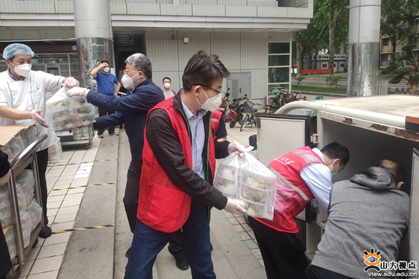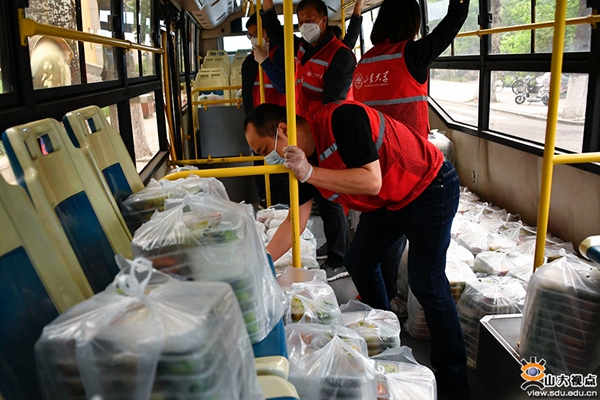 “同学们,你们饿了吧,饭来啦。”“同学你好,这是你下单的物品。”“谢谢老师,您辛苦啦!”……近日,在山东大学中心校区校园中,常常可以听到这样你来我往的对话。因疫情防控需要,在中心校区学生静态管理期间,校区近260名教职员工齐上阵,在保证正常工作的同时,穿上红马甲,为1万余名同学提供志愿服务,保障他们的就餐、饮水、基本物资购置等生活需求。一个个辛勤劳动的画面,一身身鲜艳的志愿红,定格成初夏校园中,最美的风景。